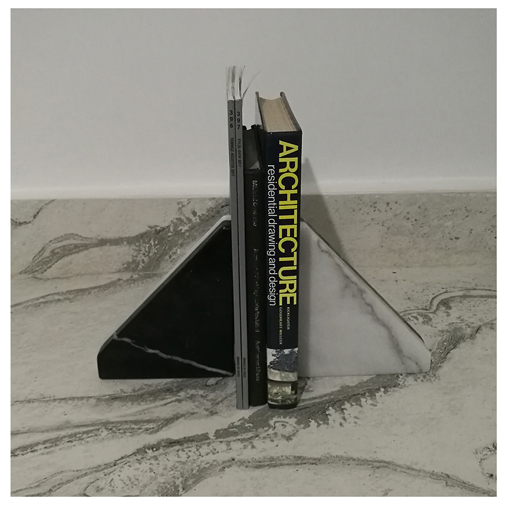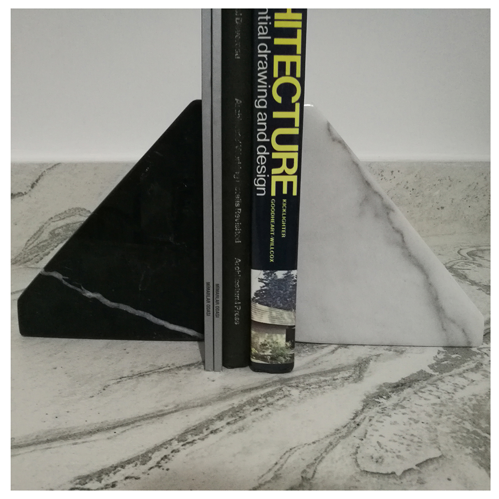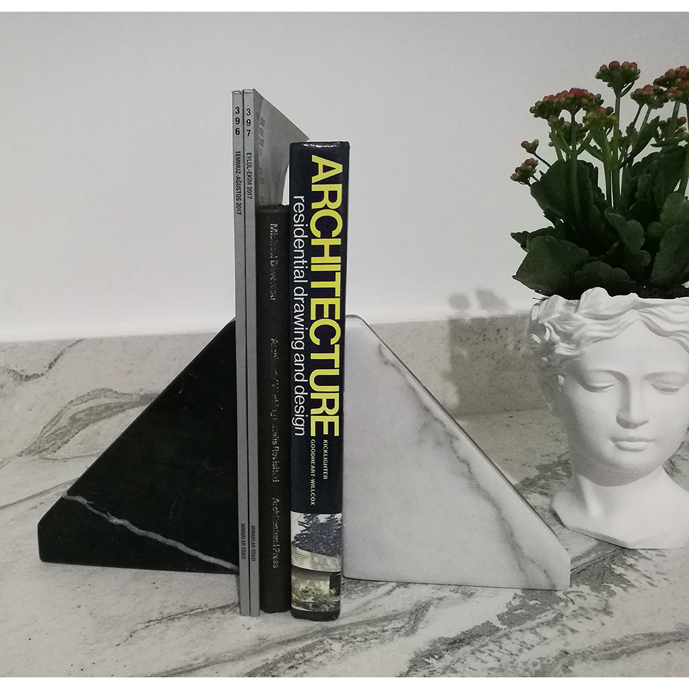 Mermer Kitap Destekleri, 19 cm x 15 cm x 4 cm ölçülerindedir.