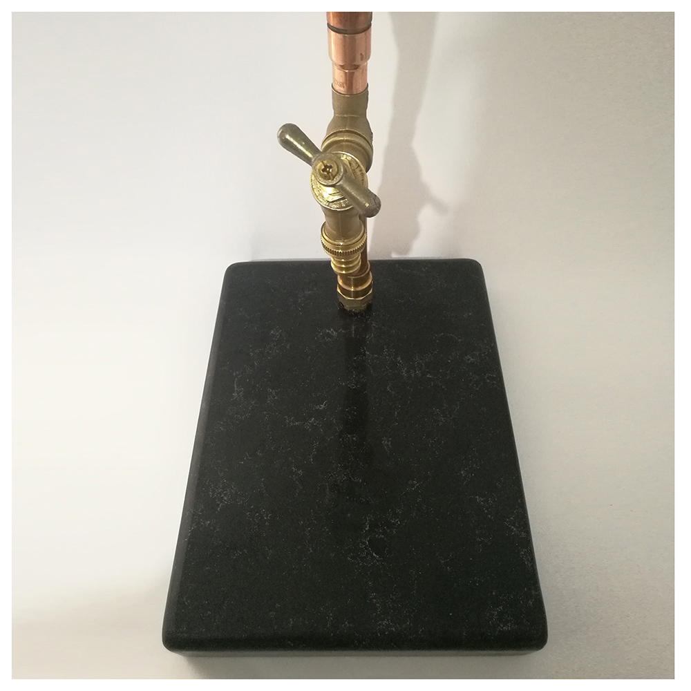 Bu özel tasarımda bakır, zemininde ise kuvars taş kullanılmıştır.